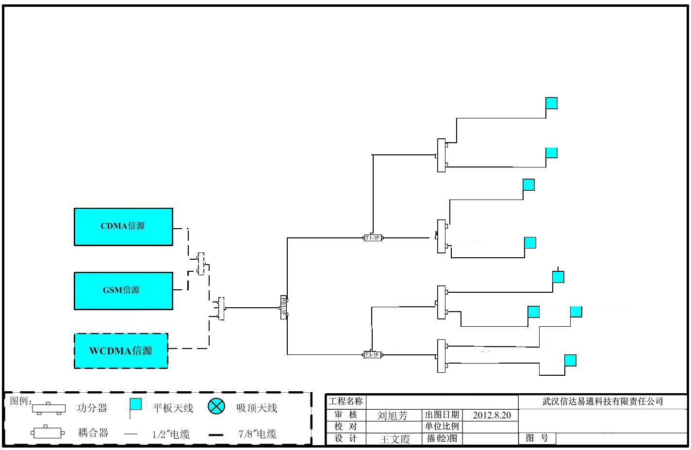 該室內(nèi)信號分布系統(tǒng)為GSM,CDMA,WCDMA覆蓋,GSM包括移動及聯(lián)通2G信號,WCDMA為聯(lián)通3G信號。