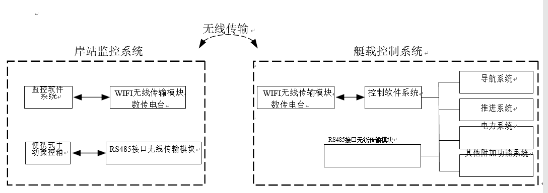 (2)艇載信息綜合監(jiān)控系統(tǒng)與自主航行控制系統(tǒng),通信內(nèi)容包括運(yùn)動(dòng)軌跡、控制命令、無人艇實(shí)時(shí)運(yùn)動(dòng)狀態(tài)。