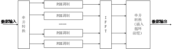 在OFDM中,調(diào)制和解調(diào)是必不可少的。在調(diào)制過程中,有多路子載波,我們對(duì)子載波上的信號(hào)進(jìn)行差分相位鍵控調(diào)制方式,簡稱PSK調(diào)制方式。其調(diào)制和解調(diào)原理如下: