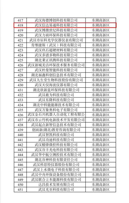 2022年11月7日,武漢市經(jīng)濟(jì)和信息化局發(fā)布消息稱,根據(jù)工信部《優(yōu)質(zhì)中小企業(yè)梯度培育管理暫行辦法》和《省經(jīng)信廳辦公室關(guān)于啟動(dòng)湖北省創(chuàng)新型中小企業(yè)培育工作的通知》(鄂經(jīng)信辦函〔2022〕94號(hào))要求,經(jīng)企業(yè)自愿申報(bào),各區(qū)(開(kāi)發(fā)區(qū))經(jīng)信部門初審、實(shí)地抽查和推薦,市經(jīng)信局進(jìn)行復(fù)審等程序,擬推薦1764家企業(yè)為2022年創(chuàng)新型中小企業(yè),現(xiàn)將擬推薦名單予以公示(公示期為2022年11月7日至11月11日)。武漢信達(dá)易通科技有限公司成功上榜!